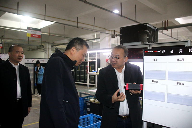 鄧市長(zhǎng)一行先后走訪了集團(tuán)旗下的圣普電氣有限公司、浙江卡斯帕新能源有限公司,對(duì)兩家公司的生產(chǎn)車間和自動(dòng)化流水線進(jìn)行了實(shí)地觀摩,認(rèn)真聽(tīng)取了趙紅良對(duì)主打產(chǎn)品的技術(shù)、質(zhì)量、產(chǎn)能及市場(chǎng)等方面的說(shuō)明。